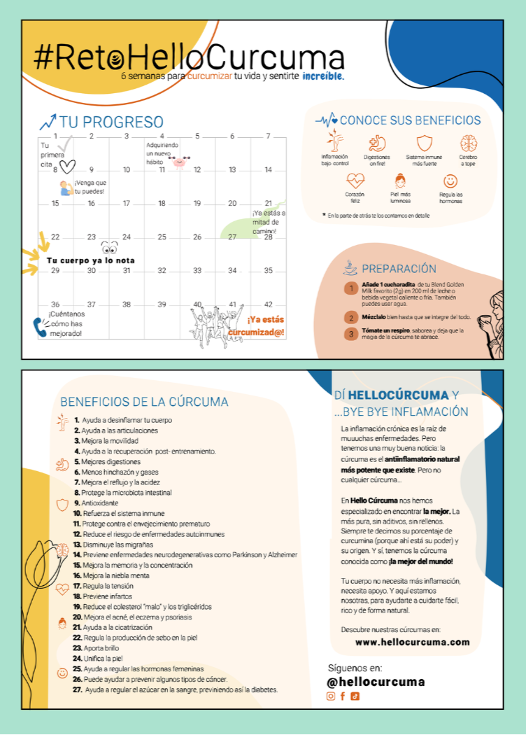 Y 6 semanas es el inicio perfecto para integrar la cúrcuma en tu día a día y empezar a notar cambios: menos inflamación, mejor digestión, más energía…